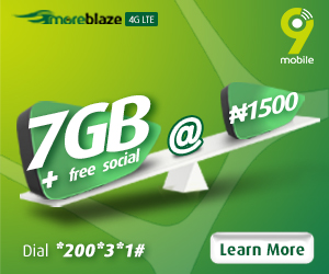 Other amazing plans include a whopping 7GB (Including free access to social media sites) valid for 7days at just N1,500 or 15gb for N5000 and 75gb for N15,000 valid for 30days.