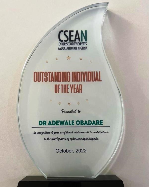 According to Mrs. Oluwatoni Falade, Chairperson of, Award Planning Committee, the award was in recognition of his over-time demonstrated excellence, innovation, and leadership within the cybersecurity industry.