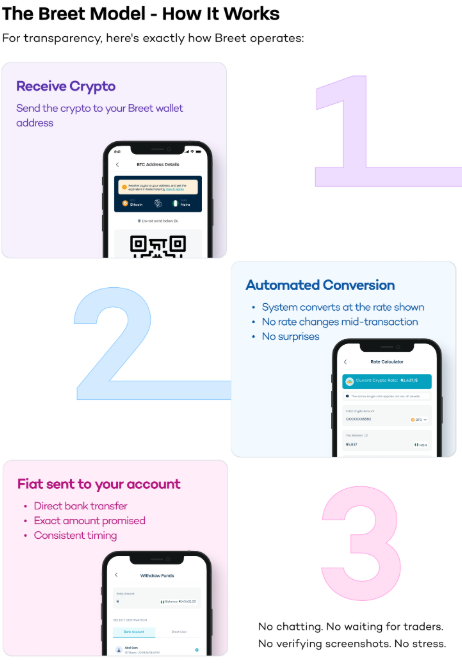 For beginners or busy professionals who want to avoid the frustrations of P2P trading, automated OTC platforms like Breet are becoming the preferred alternative. Unlike P2P, where the gamble is on a stranger’s mood, an OTC model allows you to trade directly with the platform.