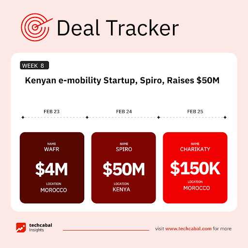 Spiro, a Kenyan e-mobility startup, secured $50 million in debt funding backed by African Export-Import Bank (Afreximbank), Nithio, and the Africa Go Green Fund managed by Cygnum Capital (Feb 24)