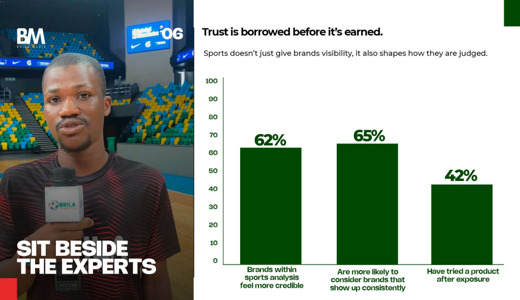 Trust also plays a strong factor in getting the buy-ins of sports consumers. According to the report, 62% of those surveyed disclosed that brands within sports analysis feel more credible, and 42% have tried a product after exposure.