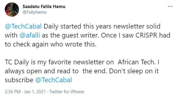 Get smarter in 5 minutes or less. Sign up for TC Daily and get daily updates in African tech news every weekday at 7 AM WAT.